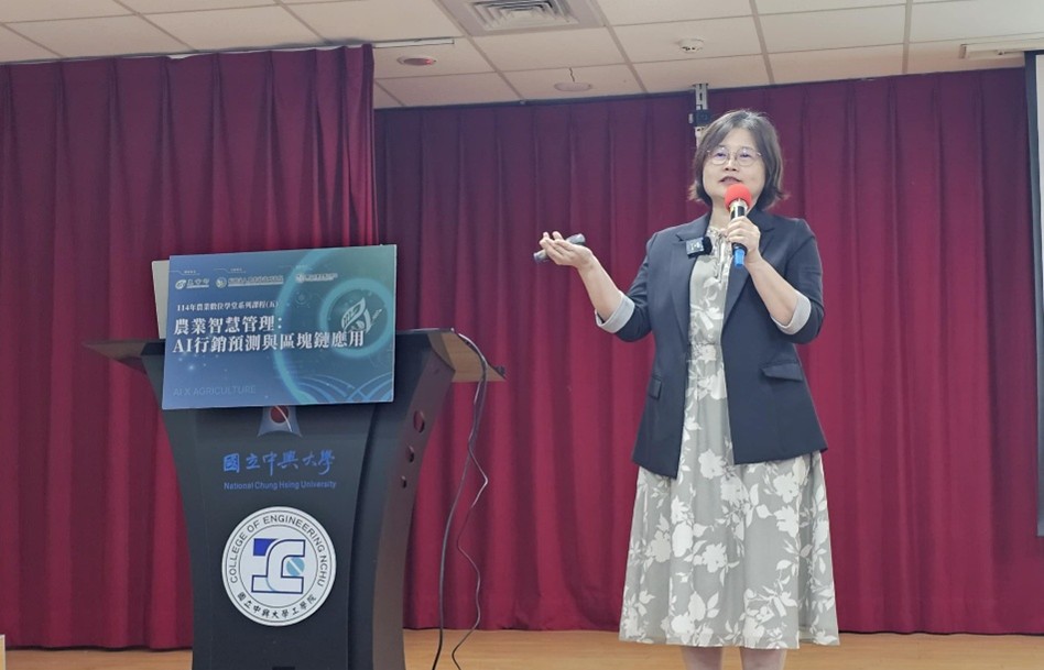 10月28日於國立中興大學應用科技大樓國際會議廳舉辦「114年度農業數位學堂系列課程(五)—農業智慧管理:AI行銷預測與區塊鏈應用」。本次課程由農業部指導,農科院主辦,國立中興大學工學院及智慧農業研究中心協辦。課程特邀國立中興大學法政學院林昱梅院長、意藍資訊股份有限公司楊立偉創辦人,以及台灣糖業公司畜殖事業部溫元文執行長,深入探討AI在行銷預測、法律規範,以及區塊鏈技術在農業供應鏈的實務應用與挑戰。